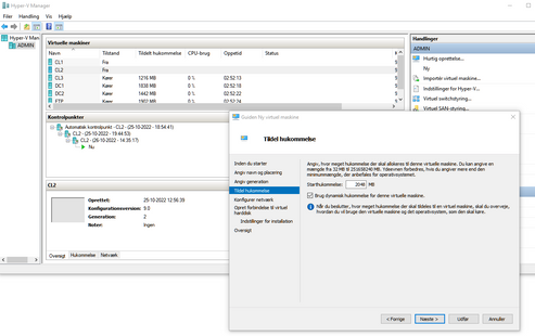 Jeg giver den Navnet CL4, samt 2048MB Ram og 2 Logiske Cpu kerner.